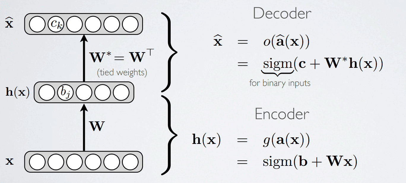 下面是一个AutoEncoder的三层模型,其中 \(W^* = W^T\)